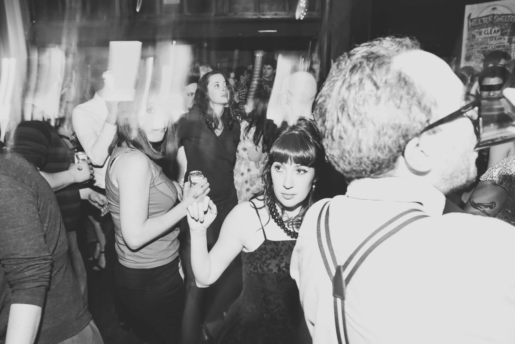I started DJing in Columbus, Ohio, because when I moved up there for my MFA, I couldn’t find the kind of dance party that met my needs — i.e., a dance party with garage-pop-psych-soul-funk music from 1957-1974 on vinyl. (My needs are very specific.) At the beginning, I had only a few of my dad’s old records, and a friend (Chris Johnson) who was a punk and proto-punk record collector with a fine at-home turntable set-up, and a graphic designer/drummer (Adam Scoppa) I’d just met playing bar trivia who claimed that it had been his dream for two years to start a Motown dance party. This motley crew formed HEATWAVE!, which went over like gangbusters with the Columbus crowd. We used to do theme parties four times a year, including an annual prom night, but when I moved back home the guys stuck to playing records rather than party-planning. I extended my stay in Columbus to make it to HEATWAVE! on March 8 and the guys decided to designate it as prom night in my honor. These dudes were two of my best friends in Columbus; DJing with them opened up a whole new aspect of the city to me; and it was wonderful to see and play with them again. Here are some pics from Megan Leigh Barnard, photographer extraordinaire. (Lots more here and here.) The party happens on the first Saturday of every month at a bar called Ace of Cups, run by the incomparable Marcy Mays.